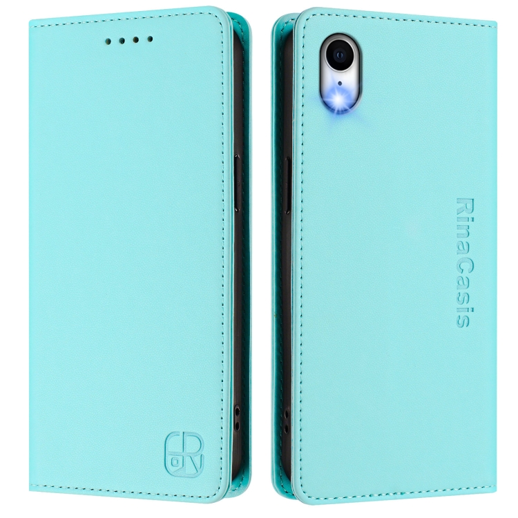 Funda de Cuero con Doble Pliegue y Succión Magnética para iPhone Xr Rc01 (Verde Menta)