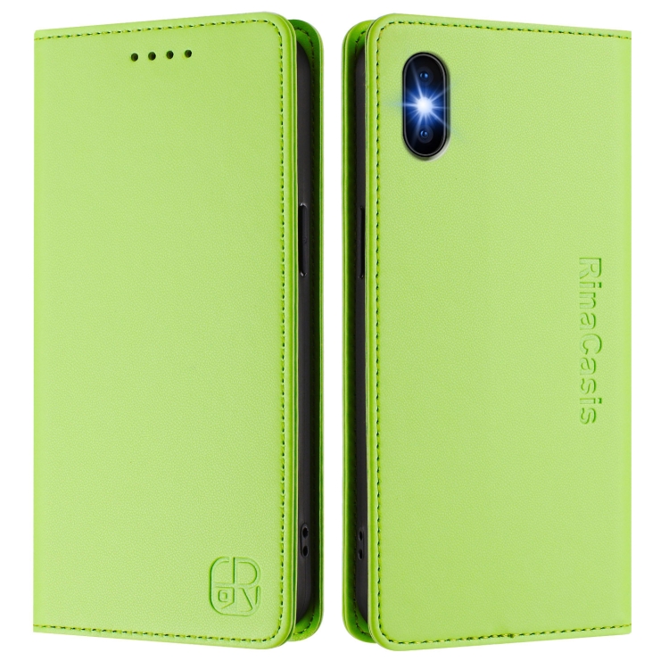 Funda de Cuero para iPhone Xs Max Rc01 con Doble Pliegue y Succión Magnética (Verde Hierba)