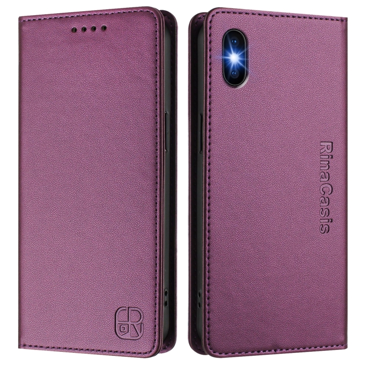 Funda de Cuero con Doble Pliegue y Succión Magnética para iPhone Xs Max Rc01 (Violeta)