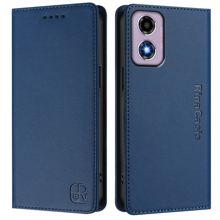 Funda de Cuero Motorola Moto E14/G24/G04/G04S Rc01 con Doble Pliegue y Succión Magnética (Azul Oscuro)