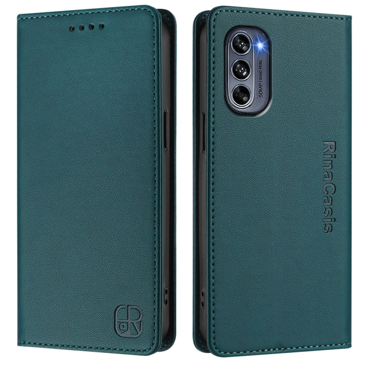 Funda de Cuero con Doble Pliegue y Succión Magnética para Motorola Moto G62 5G Rc01 (Verde Oscuro)