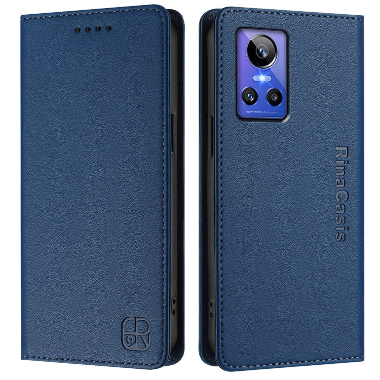 Funda de Cuero con Doble Pliegue y Succión Magnética para Realme Gt Neo 3 Rc01 (Azul Oscuro)