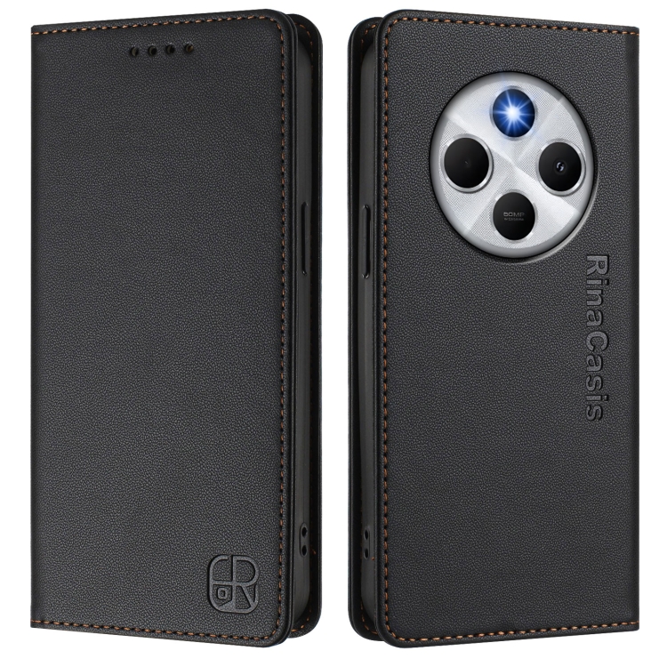 Funda de Cuero con Doble Pliegue y Succión Magnética para Redmi 14C 4G / 14R 5G Global Rc01 (Negra)