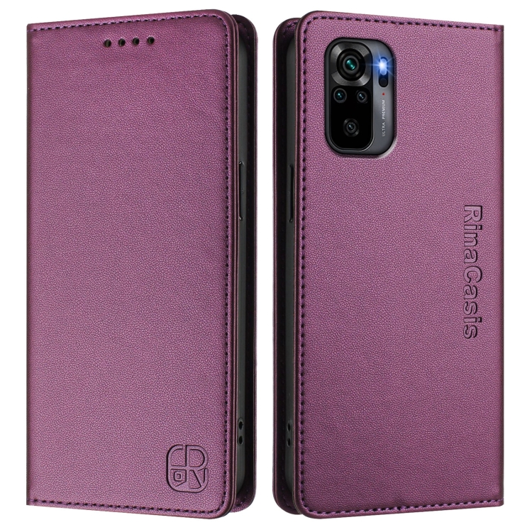 Funda de Cuero con Doble Pliegue y Succión Magnética para Redmi Note 10 4G/Note 10S 4G Rc01 (Violeta)