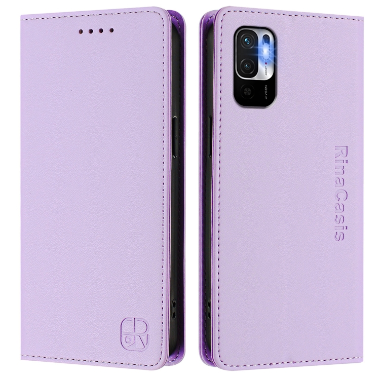 Funda de Cuero con Doble Pliegue y Succión Magnética para Redmi Note 10 5G/Note 10T 5G Rc01 (Morado Claro)