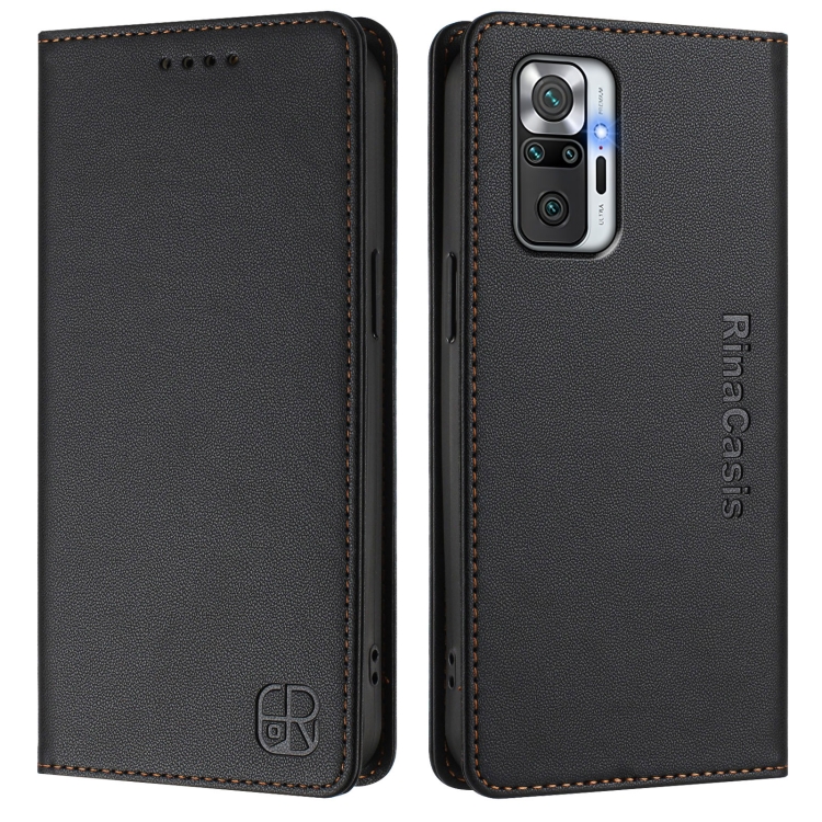 Funda de Cuero con Doble Pliegue y Succión Magnética para Redmi Note 10 Pro 4G/Note 10 Pro Max Rc01 (Negra)