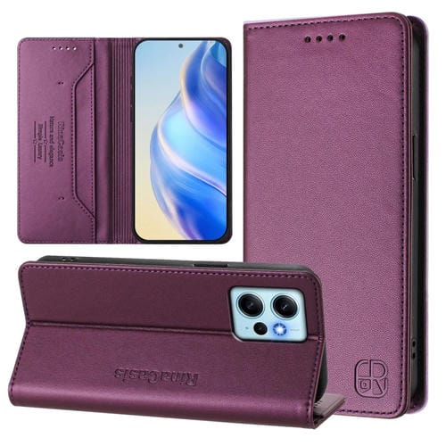 Funda de Cuero con Doble Pliegue y Succión Magnética para Redmi Note 12 4G Global Rc01 (Violeta)