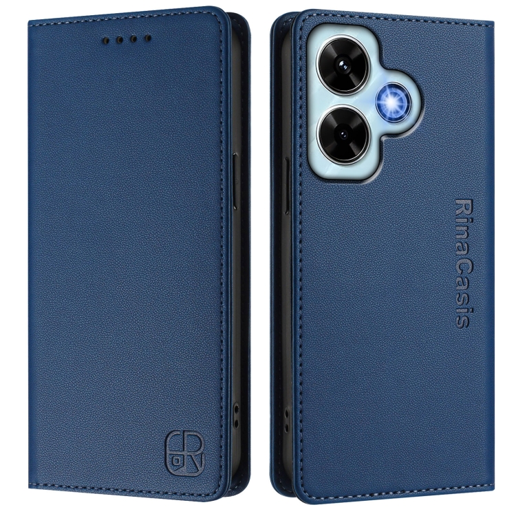 Funda de Cuero con Doble Pliegue y Succión Magnética para Redmi Note 13 4G Global Rc01 (Azul Oscuro)