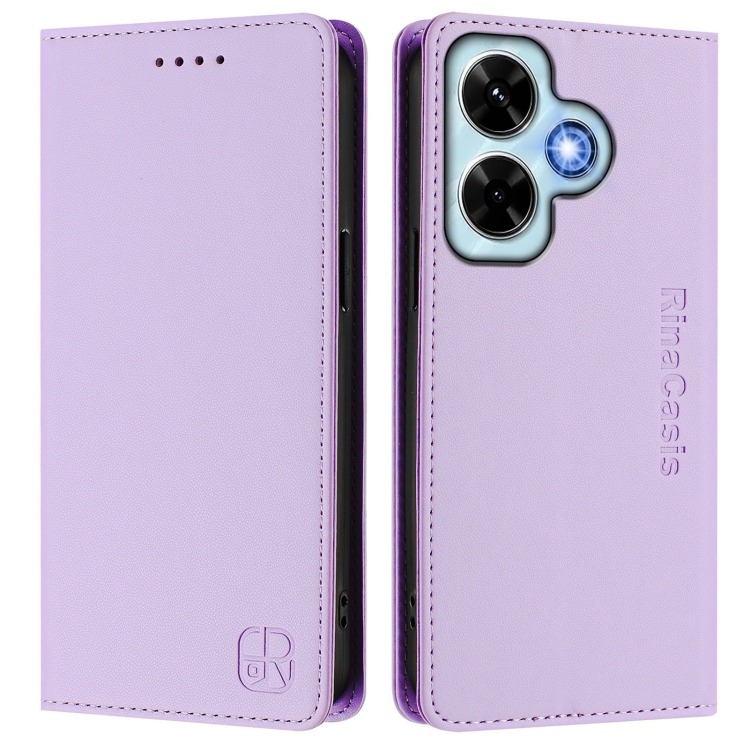Funda de Cuero con Doble Pliegue y Succión Magnética para Redmi Note 13 4G Global Rc01 (Morado Claro)