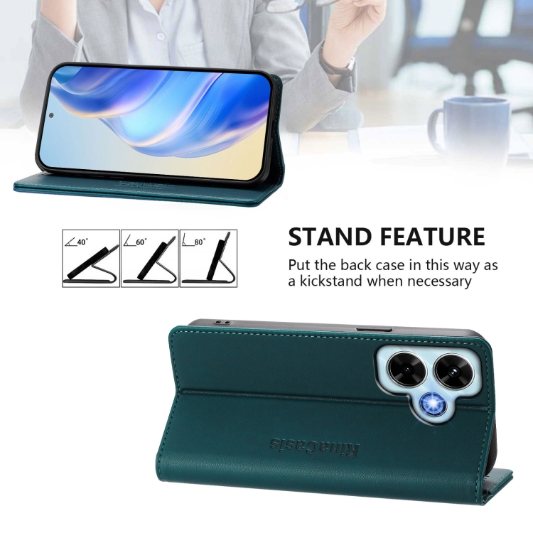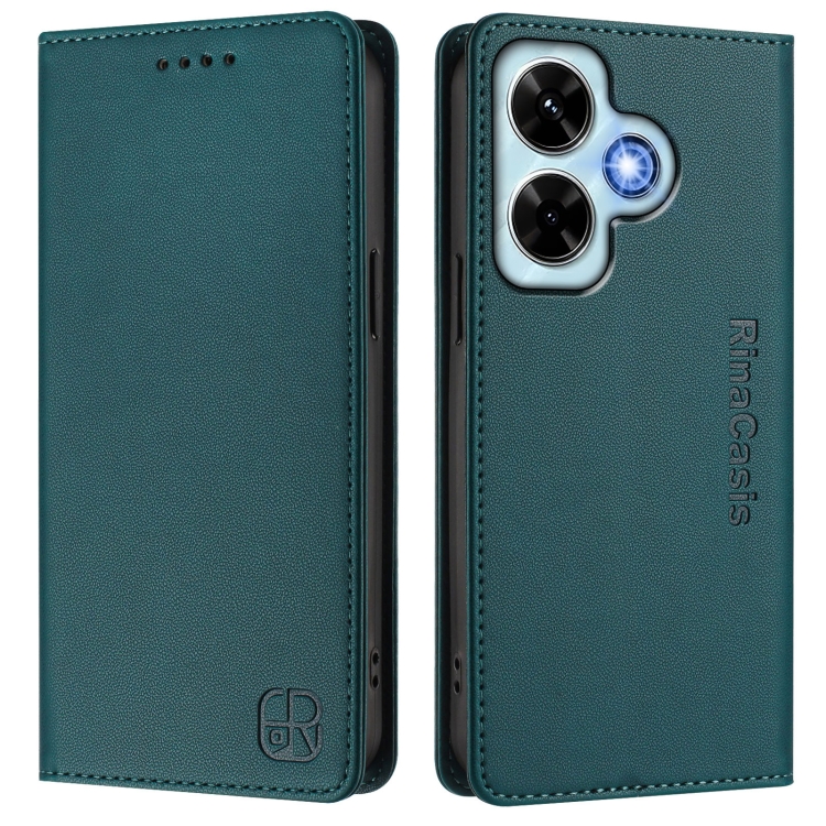 Funda de Cuero con Doble Pliegue y Succión Magnética para Redmi Note 13 4G Global Rc01 (Verde Oscuro)