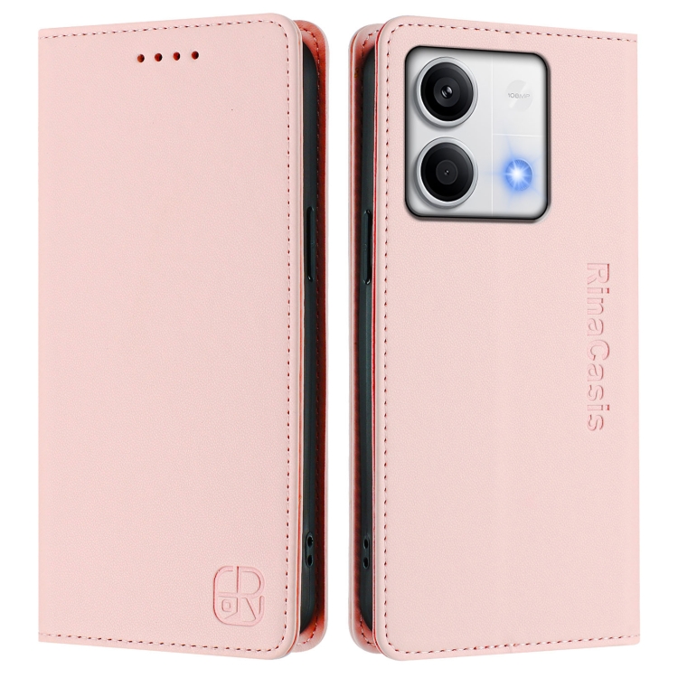 Funda de Cuero con Doble Pliegue y Succión Magnética para Redmi Note 13 5G Global Rc01 (Rosa)