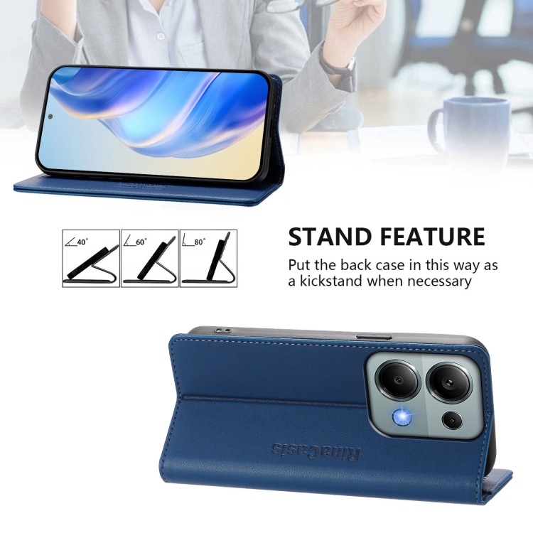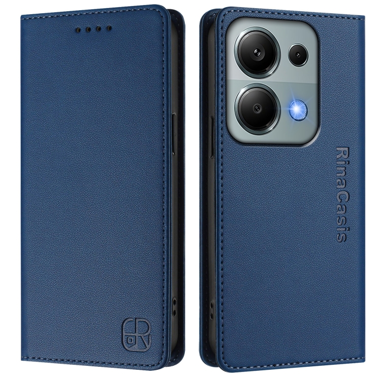 Funda de Cuero con Doble Pliegue y Succión Magnética para Redmi Note 13 Pro 4G Global Rc01 (Azul Oscuro)
