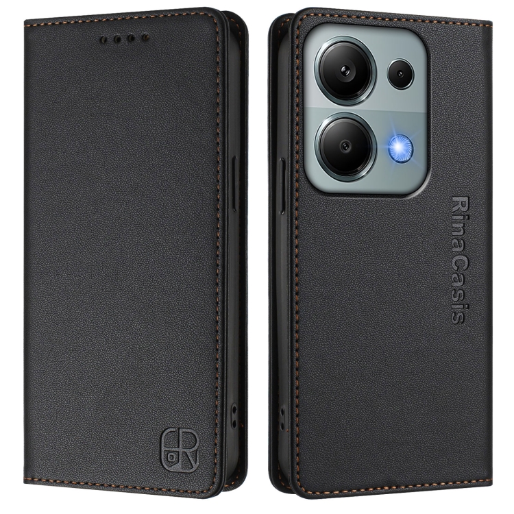 Funda de Cuero con Doble Pliegue y Succión Magnética para Redmi Note 13 Pro 4G Global Rc01 (Negra)