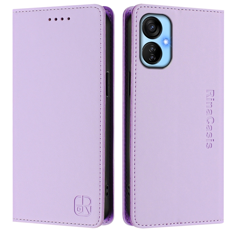 Funda de Cuero con Doble Pliegue y Succión Magnética RFID para Tecno Spark 9T/9 Pro Rc01 (Morado Claro)