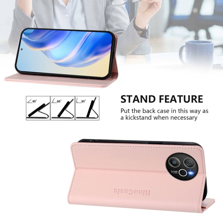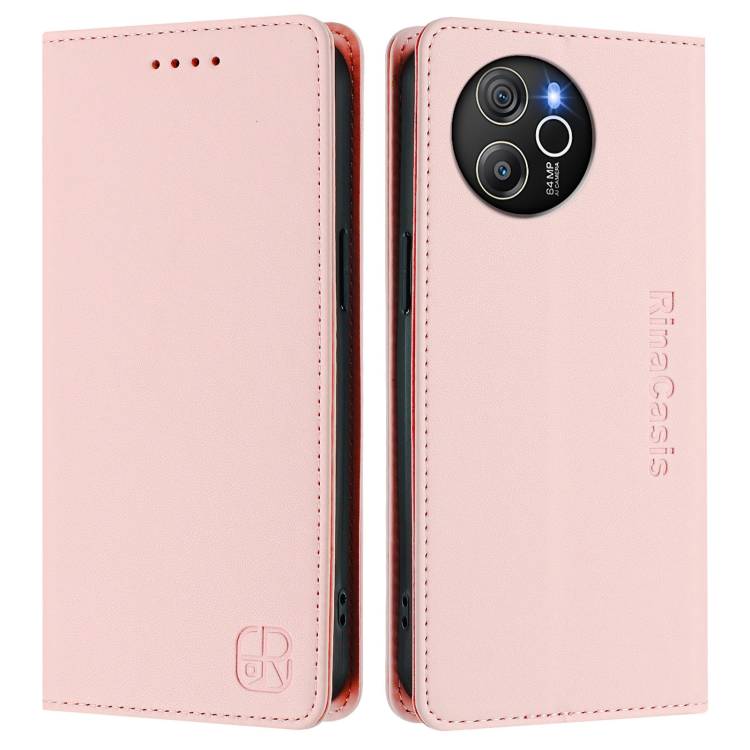 Funda de Cuero con Doble Pliegue y Succión Magnética para BlackView Shark 8 y Oscal Tiger 12 Rc01 (Rosa)