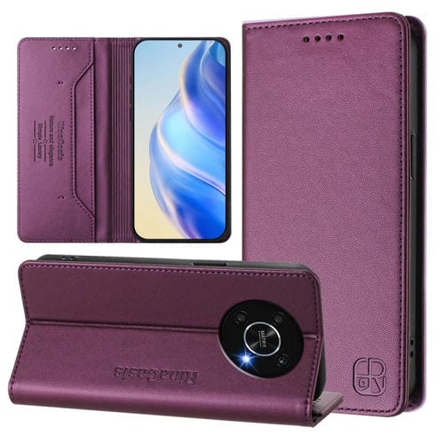 Funda de Cuero con Doble Pliegue Succión Magnética Rfid para Honor X9 4G 5G y X30 5G Rc01 (Violeta)