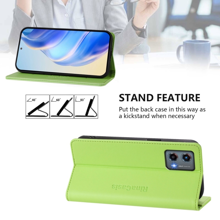 Funda de Cuero Motorola Moto G 5G 2023 Rc01 con Doble Pliegue y Succión Magnética (Verde Hierba)