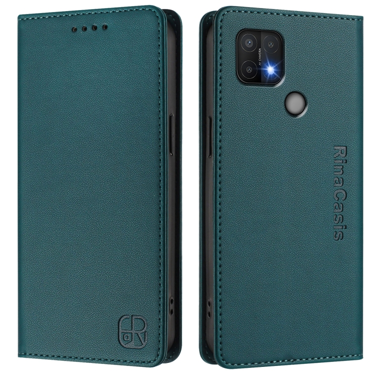 Funda de Cuero con Doble Pliegue y Succión Magnética Rfid para Oppo A15 / A15S / A35 2021 Rc01 (Verde Oscuro)