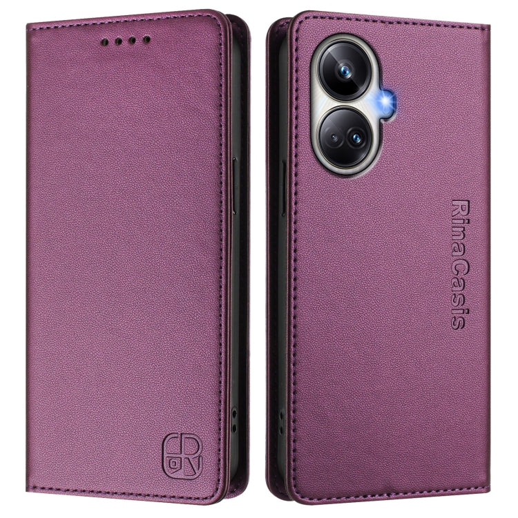 Funda de Cuero con Doble Pliegue y Succión Magnética para Teléfono Realme 10 Pro+ 5G Rc01 (Violeta)