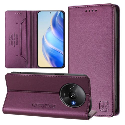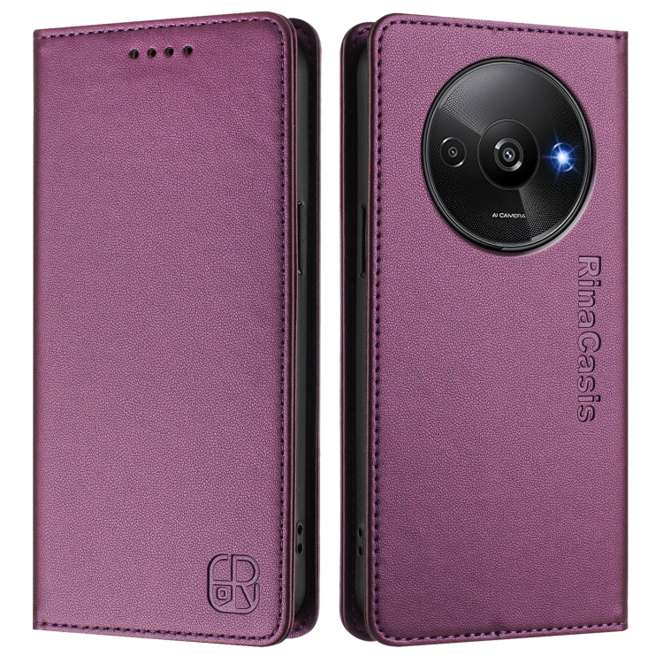 Funda de Cuero con Doble Pliegue y Succión Magnética para Teléfono Redmi A3 / Xiaomi Poco C61 4G Global Rc01 (Violeta)