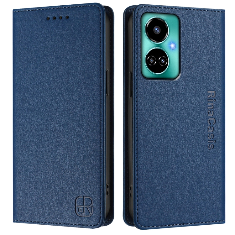 Funda de Cuero Rfid con Doble Pliegue y Succión Magnética para Tecno Camon 19/19 Pro 5G Rc01 (Azul Oscuro)
