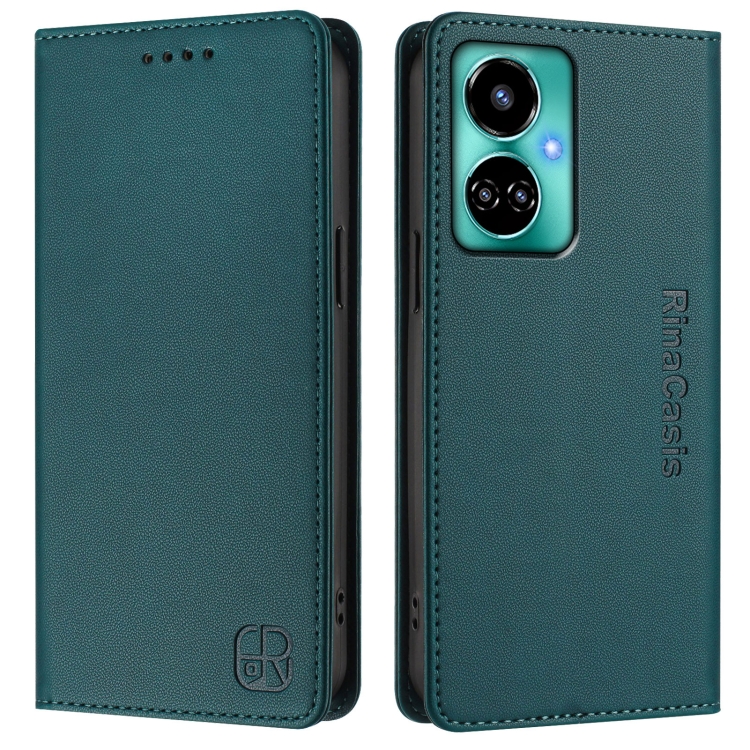 Funda de Cuero RFID con Doble Pliegue y Succión Magnética para Tecno Camon 19/19 Pro 5G (Verde Oscuro)