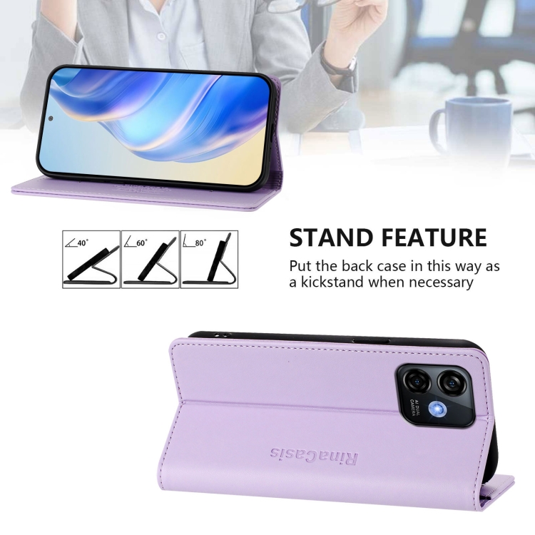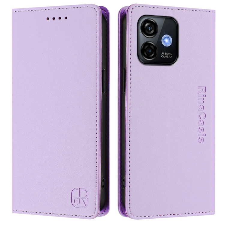 Funda de Cuero Ulefone Note 16 Pro Rc01 con Doble Pliegue y Succión Magnética (Morado Claro)