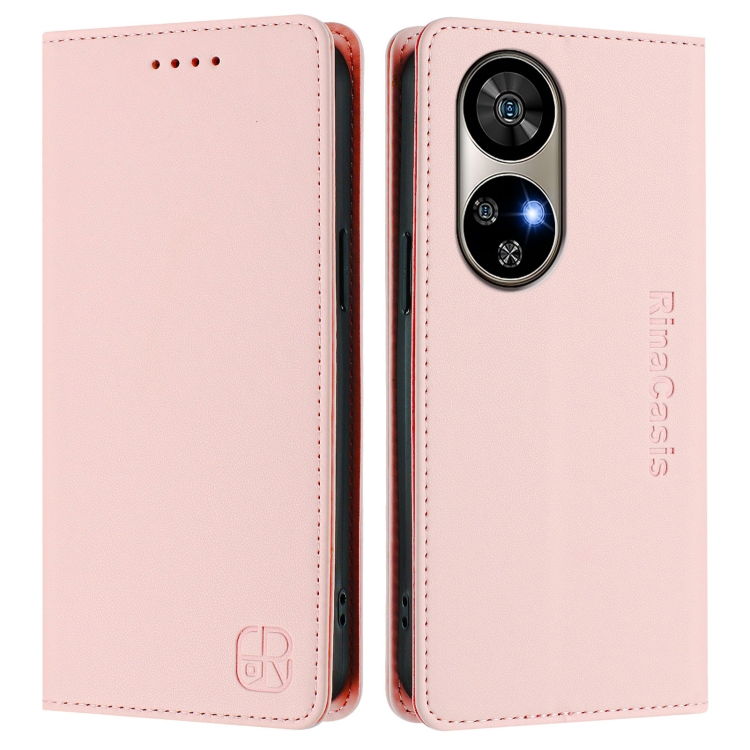 Funda de Cuero para Ulefone Note 17 Pro Rc01 con Doble Pliegue y Succión Magnética (Rosa)