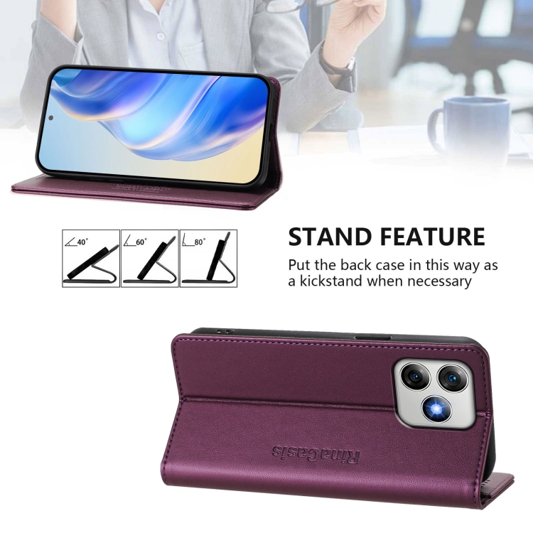 Funda de Cuero para Ulefone Note 18 Ultra 5G Rc01 con Doble Pliegue y Succión Magnética (Violeta)