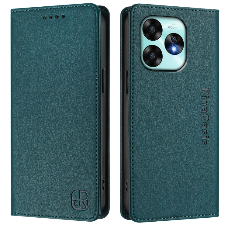Funda de Cuero con Doble Pliegue y Succión Magnética para Umidigi A15/A15C/A15T Rc01 (Verde Oscuro)