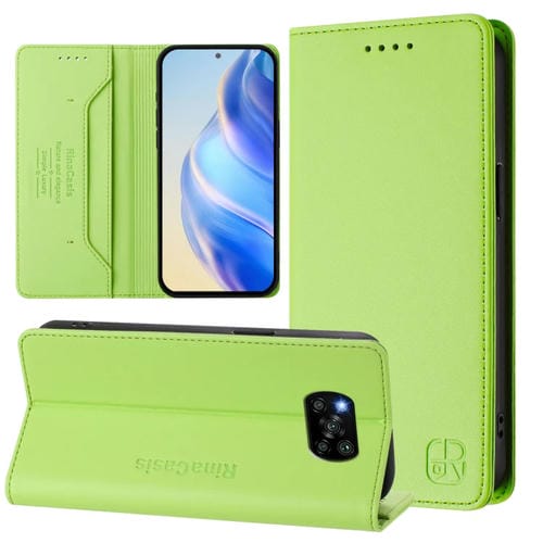 Funda de Cuero con Doble Pliegue y Succión Magnética para Teléfono Xiaomi Poco X3 / X3 Nfc / X3 Pro Rc01 (Verde Hierba)