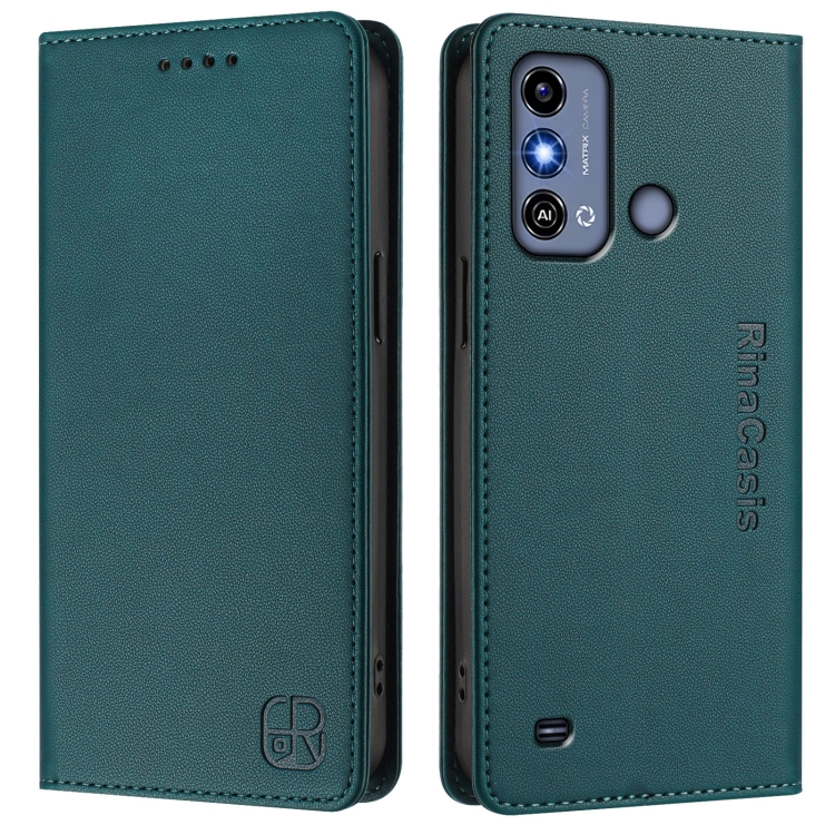 Funda de Cuero con Doble Pliegue y Succión Magnética para ZTE Blade A53 A53+ Rc01 (Verde Oscuro)