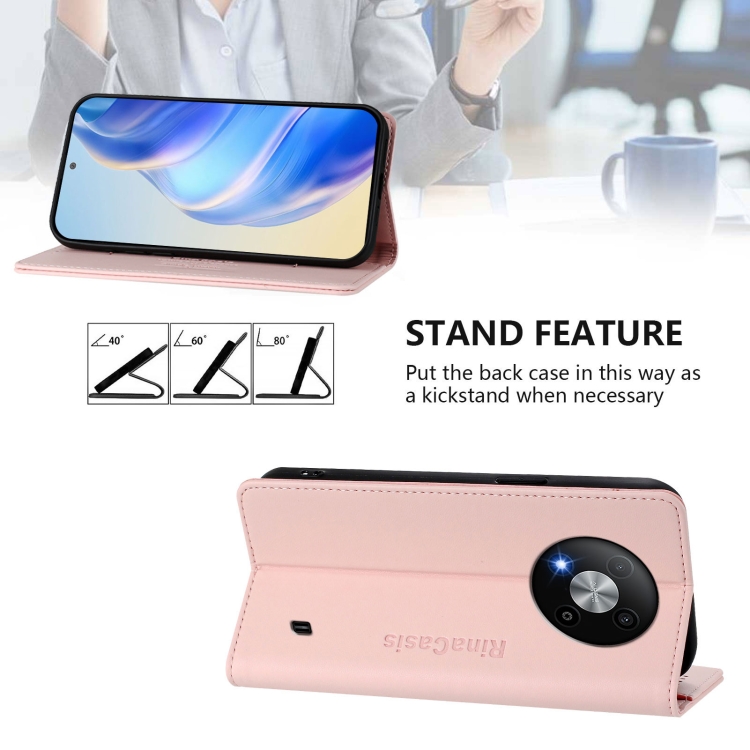 Funda de Cuero con Doble Pliegue y Succión Magnética para ZTE Blade A73 5G Rc01 (Rosa)