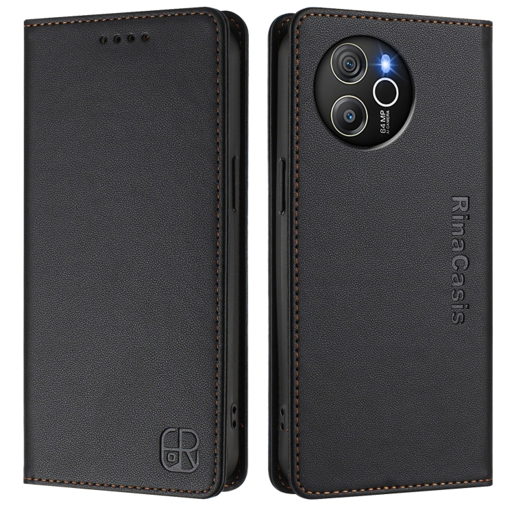 Funda de Cuero con Doble Pliegue y Succión Magnética Rfid para BlackView Shark 8 y Oscal Tiger 12 Rc01 (Negro)