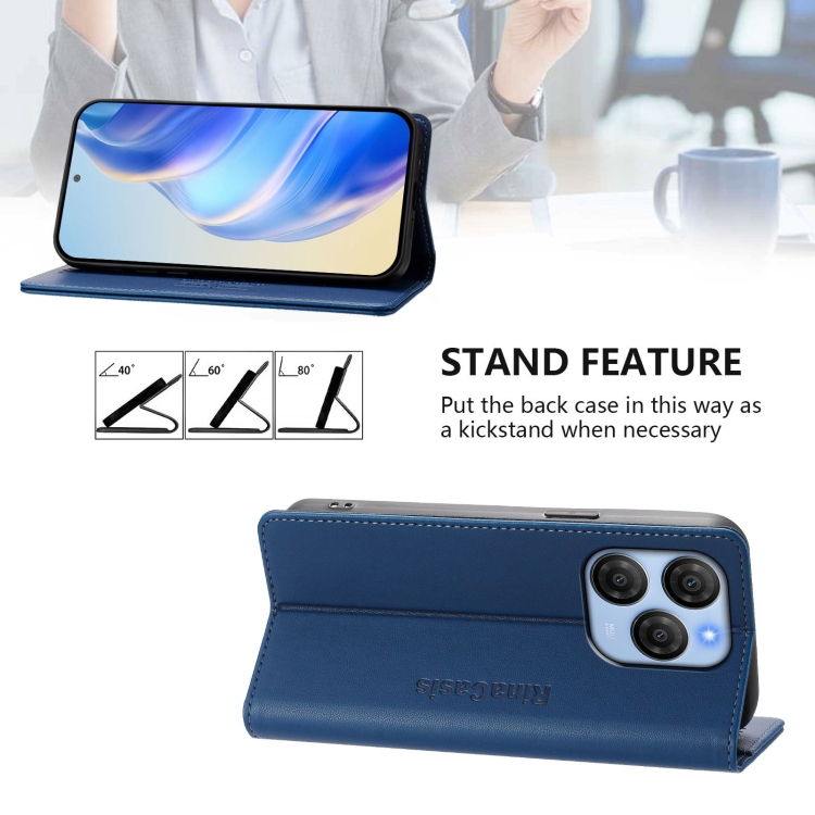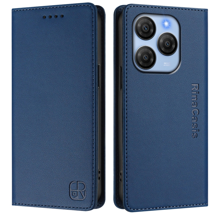 Funda de Cuero con Doble Pliegue y Succión Magnética Rfid para BlackView Shark 9 Rc01 (Azul Oscuro)
