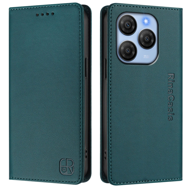 Funda de Cuero con Doble Pliegue Succión Magnética Rfid para BlackView Shark 9 Rc01 (Verde Oscuro)