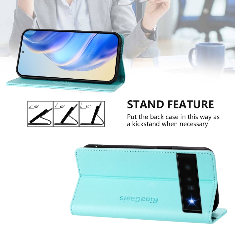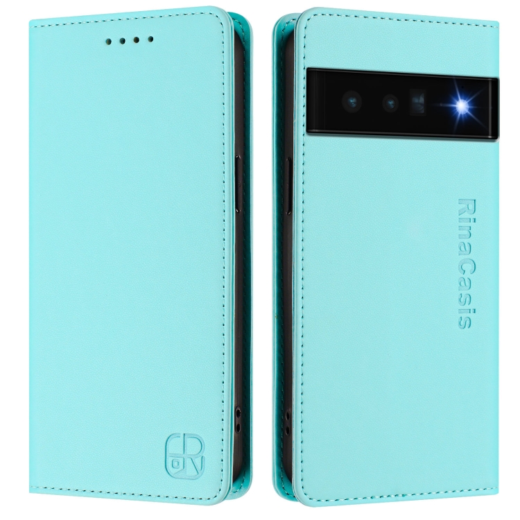 Funda de Cuero con Doble Pliegue y Succión Magnética Rfid para Google Pixel 6 Pro Rc01 (Verde Menta)