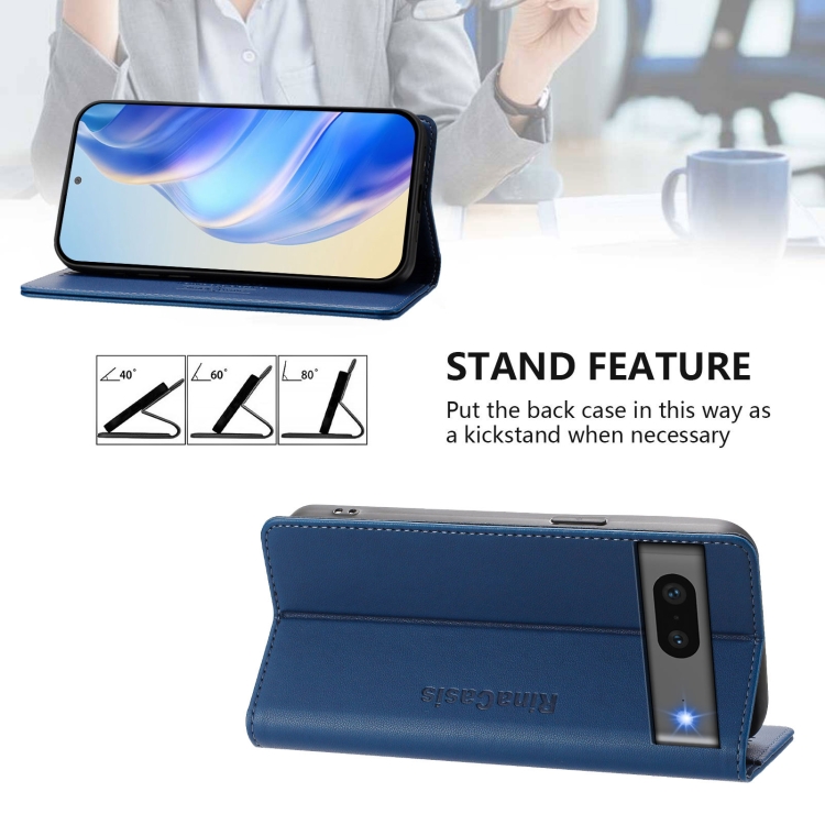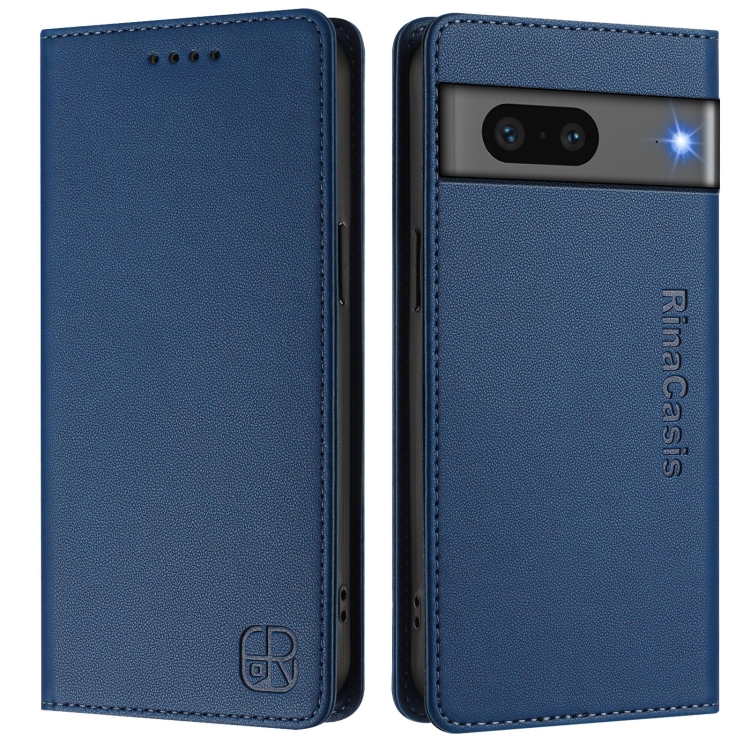 Funda de Cuero con Doble Pliegue y Succión Magnética Rfid para Google Pixel 7 Rc01 (Azul Oscuro)