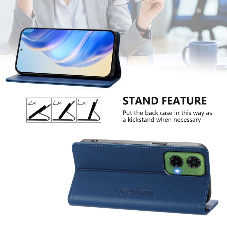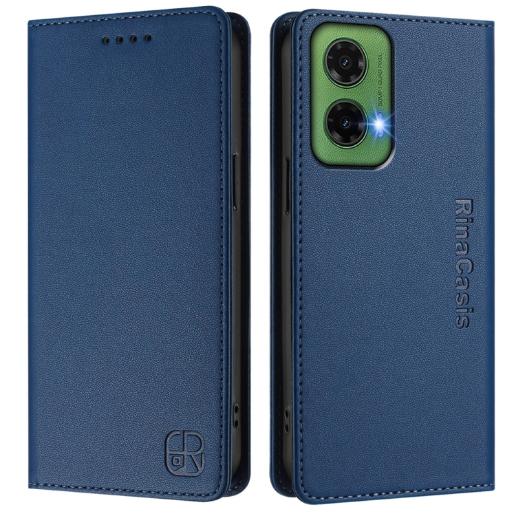 Funda de Cuero con Doble Pliegue y Succión Magnética RFID para Motorola Moto G35 Rc01 (Azul Oscuro)