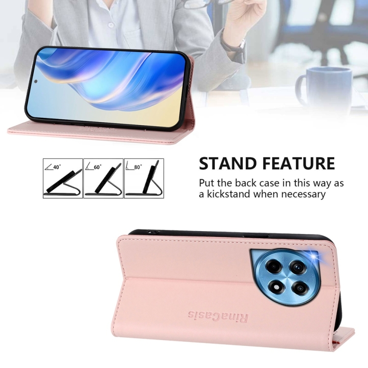Funda de Cuero con Doble Pliegue y Succión Magnética RFID para OnePlus 12R Rc01 (Rosa)
