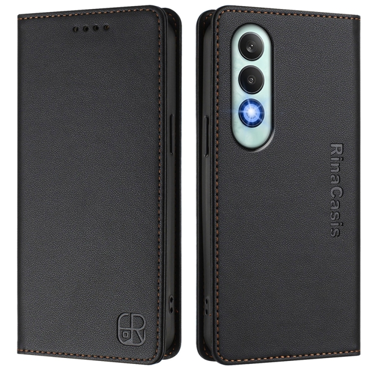 Funda de Cuero con Doble Pliegue y Succión Magnética Rfid para OnePlus Nord Ce4 Rc01 (Negra)