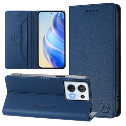 Funda de Cuero con Doble Pliegue y Succión Magnética Rfid para Oppo Reno8 5G Rc01 (Azul Oscuro)