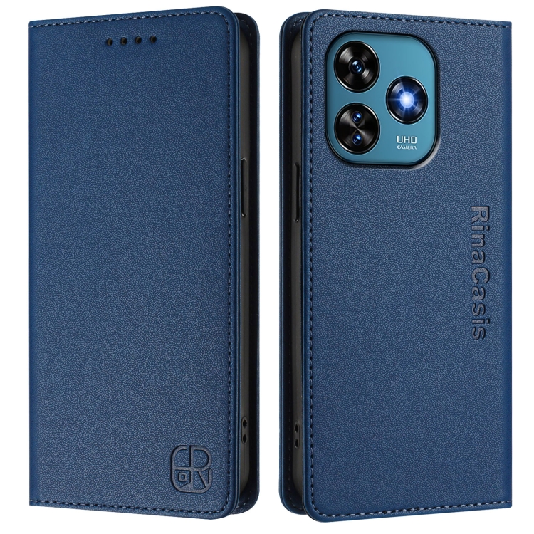 Funda de Cuero con Doble Pliegue y Succión Magnética Rfid para Oukitel C51 Rc01 (Azul Oscuro)