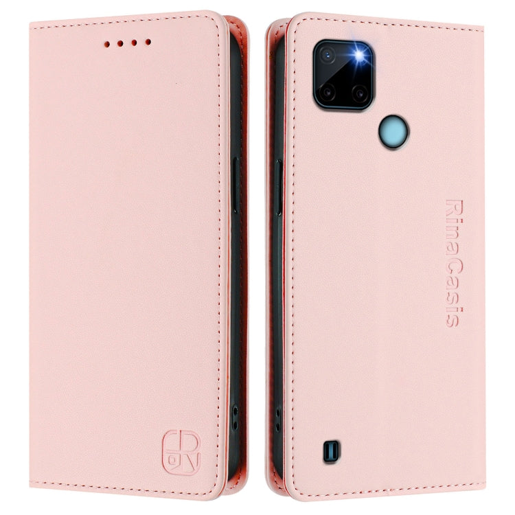 Funda de Cuero con Doble Pliegue y Succión Magnética Rfid para Realme C21Y Rc01 (Rosa)