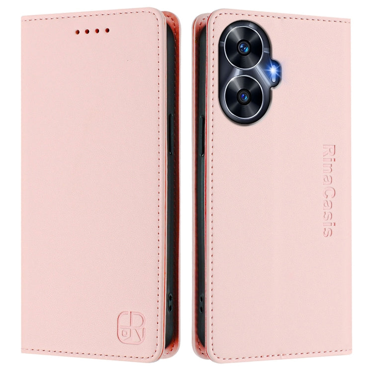 Funda de Cuero con Doble Pliegue y Succión Magnética Rfid para Realme C55 4G Global / Narzo N55 Rc01 (Rosa)