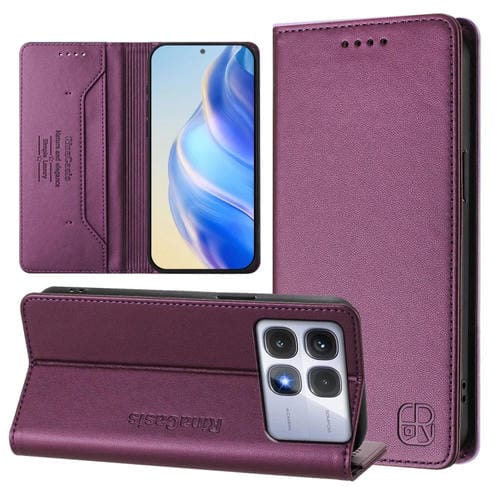 Funda de Cuero con Doble Pliegue y Succión Magnética Rfid para Redmi K70 Ultra 5G Global Rc01 (Violeta)