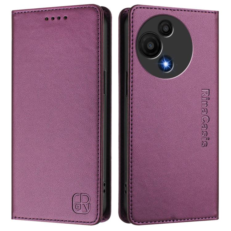 Funda de cuero con doble pliegue y succión magnética RFID para TCL 605/60 SE RC01 (violeta)