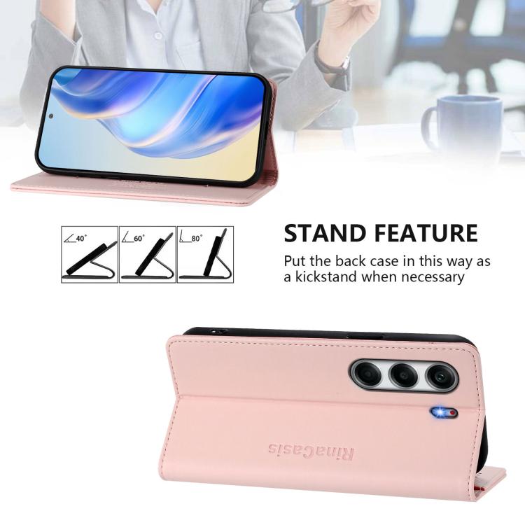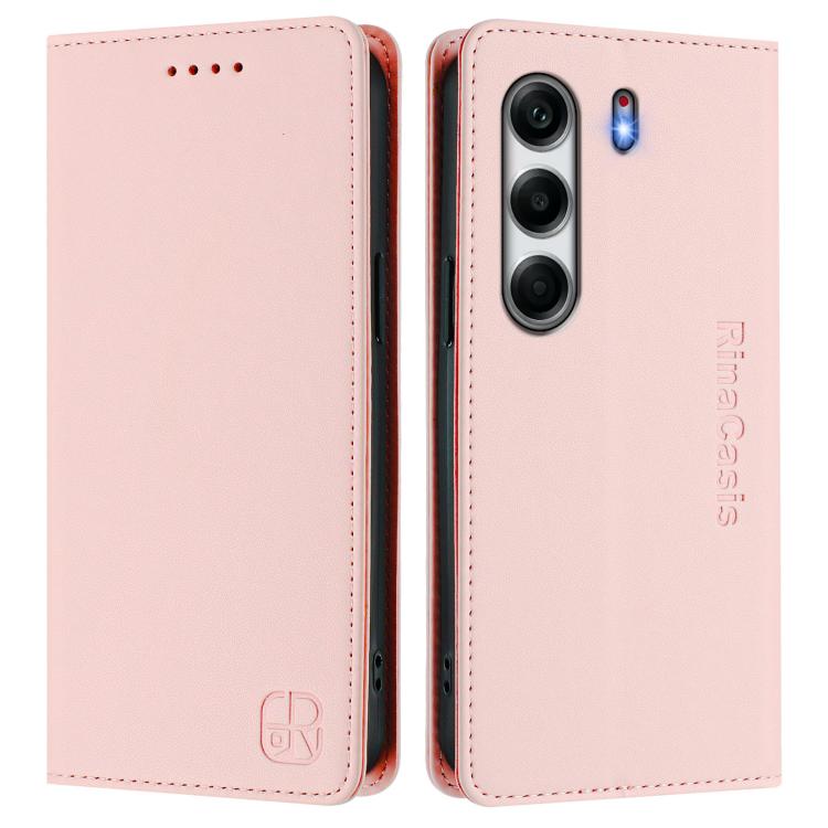 Funda de Cuero con Doble Pliegue y Succión Magnética RFID para Tecno Camon 40 4G Rc01 (Rosa)