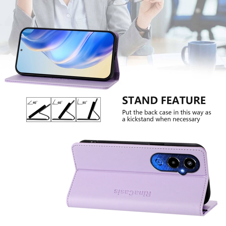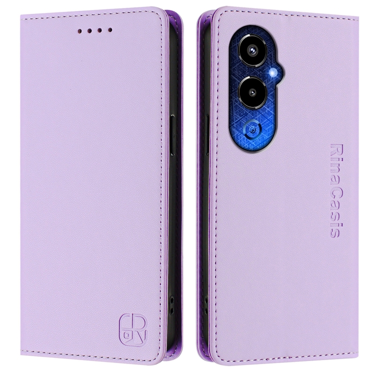 Funda de Cuero para Tecno Pova 4 Pro 4G Rc01 con Doble Pliegue y Succión Magnética Rfid (Morado Claro)