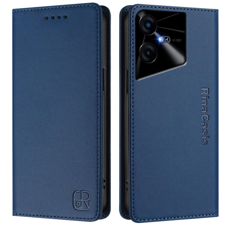 Funda de Cuero con Doble Pliegue y Succión Magnética RFID para Tecno Pova Neo 3 Rc01 (Azul Oscuro)